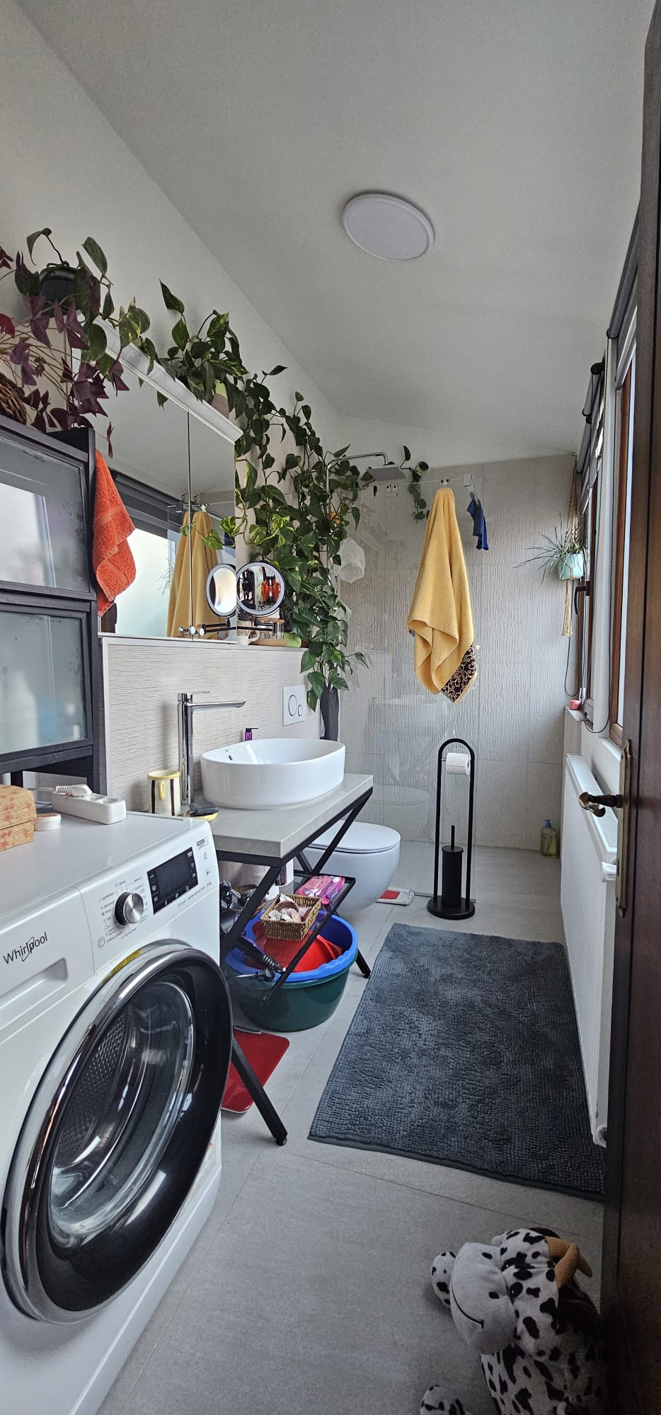 Proprietatea dispune de spațiu la subsol neamenajat de 95 mp, unde sunt trase utilitățile, precum și un pod izolat de 65 mp. Clădirea este izolată exterior cu polistiren de 10 cm și interior cu 5 cm. Sunt instalate 4 centrale termice, 4 apometre, 2 contoare de curent și un panou separat pentru cele două studiouri cu control individual. Sistemul de panouri solare are 12 panouri, putere 5,5 kW cu invertor de 3,8. Imobilul este securizat cu alarmă și 5 camere video.